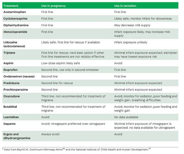 ACUTE TREATMENT DURING PREGNANCY AND LACTATION